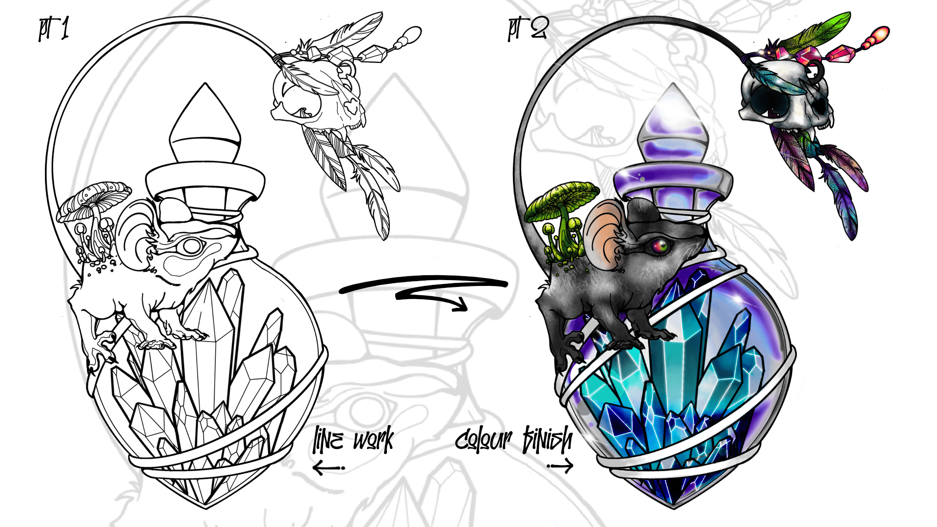 evolution of skollmause to cerbermause-redrawing an old design - full colour background final