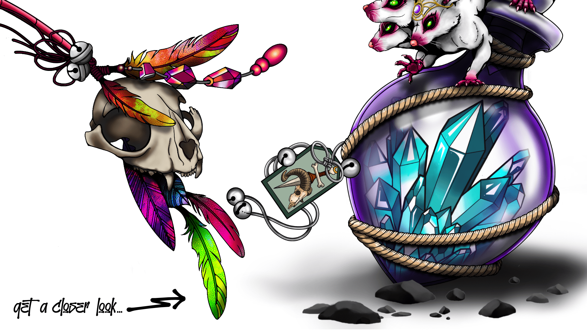 of a common field mouse. Small, furry…adorable…. But what’s that on his tail? A small skull, adorned with feathers and other small items is grasped tightly by his tail and held aloft, always swaying lazily back and forth. Like all dangerous things, This Skull Totem is both an indicator of his power and a warning if any should happen upon him- “Don’t mistake me for another”