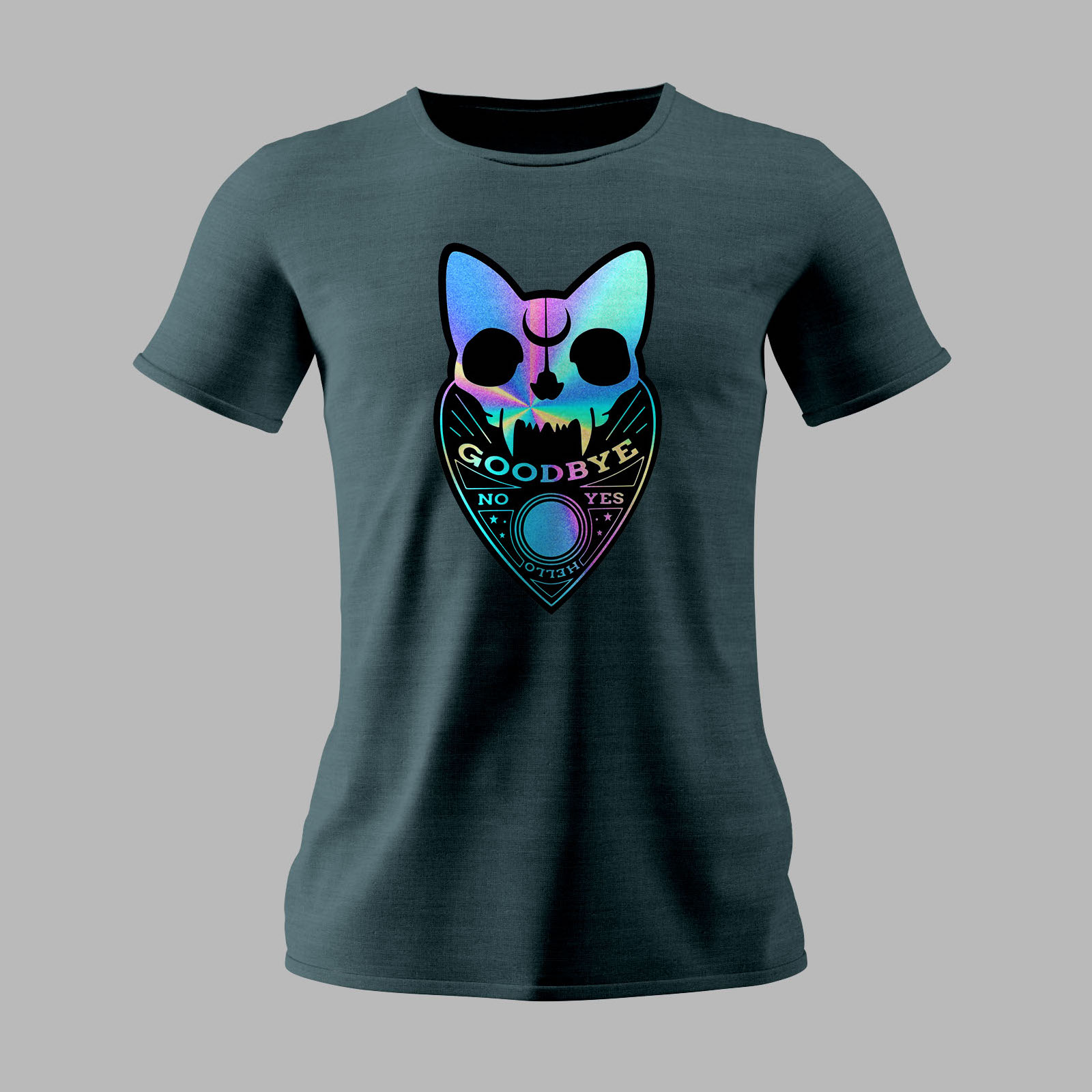 I’ve done some fairly delicate designs, so if there’s a will, there’s a way. And the final result is pretty damn good. Essentially once you’ve cut both layers, you’ll want to weed the holo htv layer. Then place it over the top of the adhesive base layer, and pop that into your heat press for a few seconds. Thats it! Depending on how intricate your holo layer is, you may want to use some transparent transfer tape to help line up your design with the base layer and hold it there while it’s in the press.