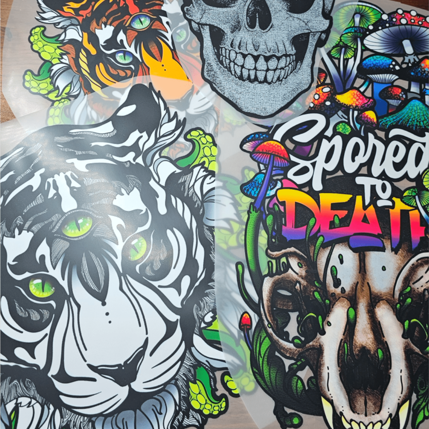 This portfolio showcases my original artwork brought to life on apparel using two premium print methods: