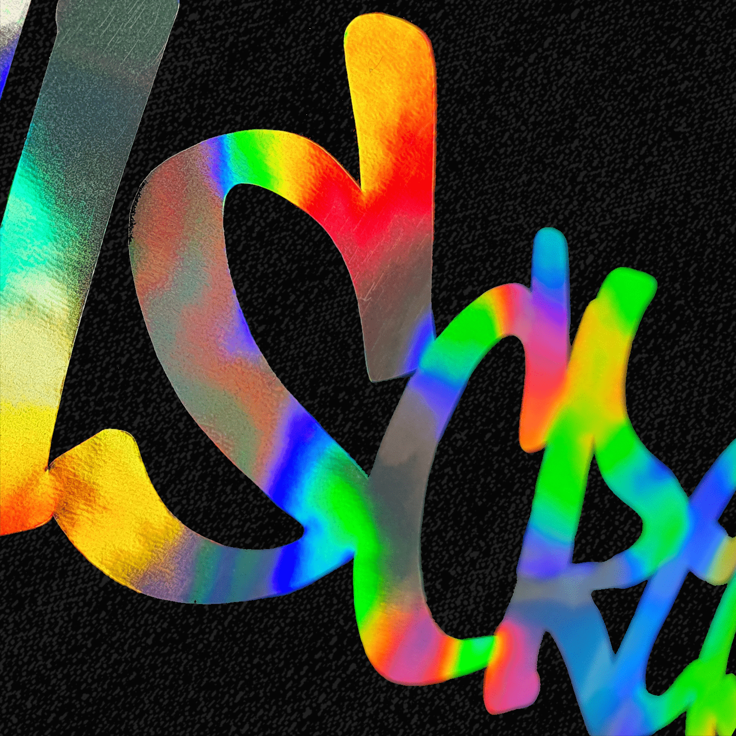 HTV vinyl graphics — tactile, bold statements with crisp lines and striking colour blocks.