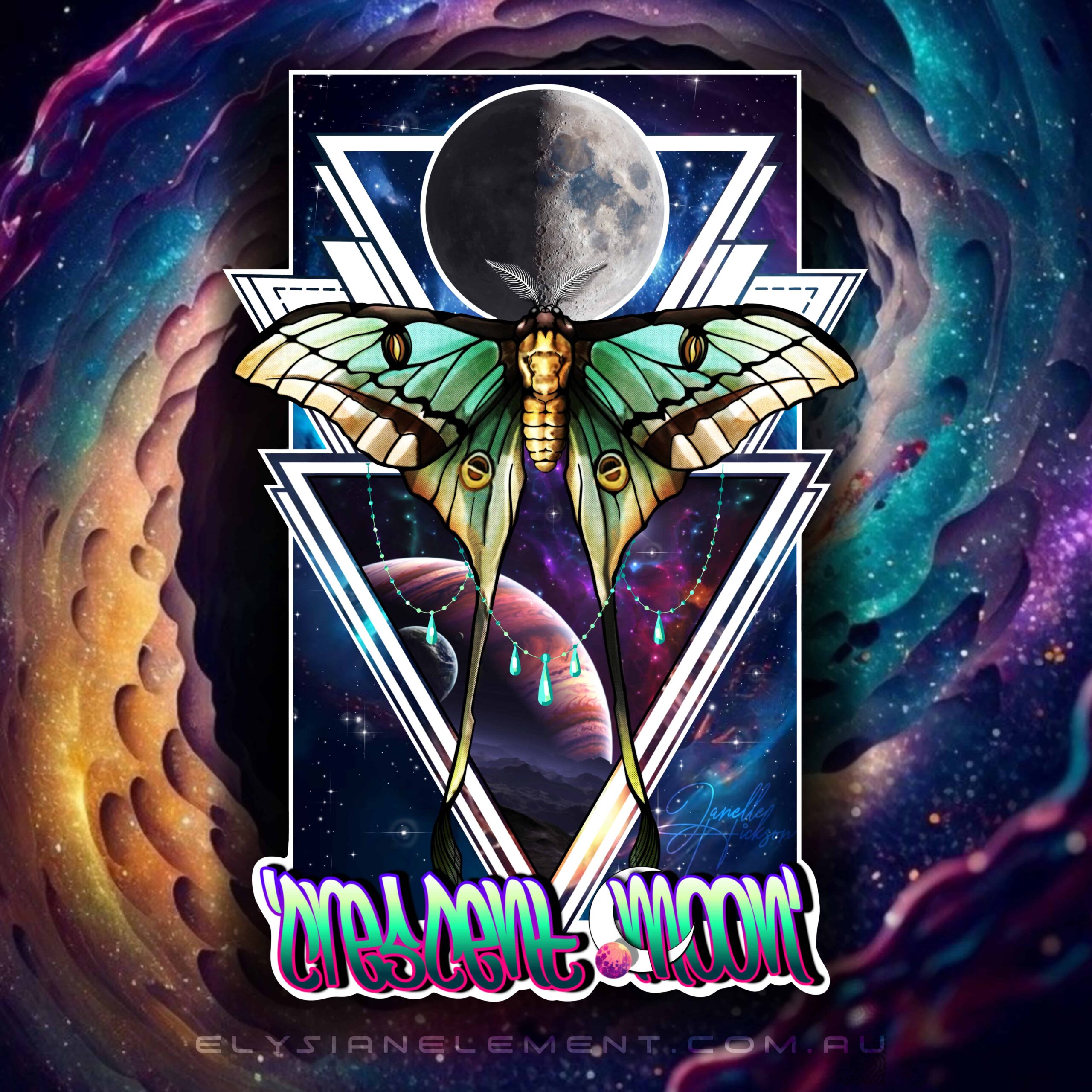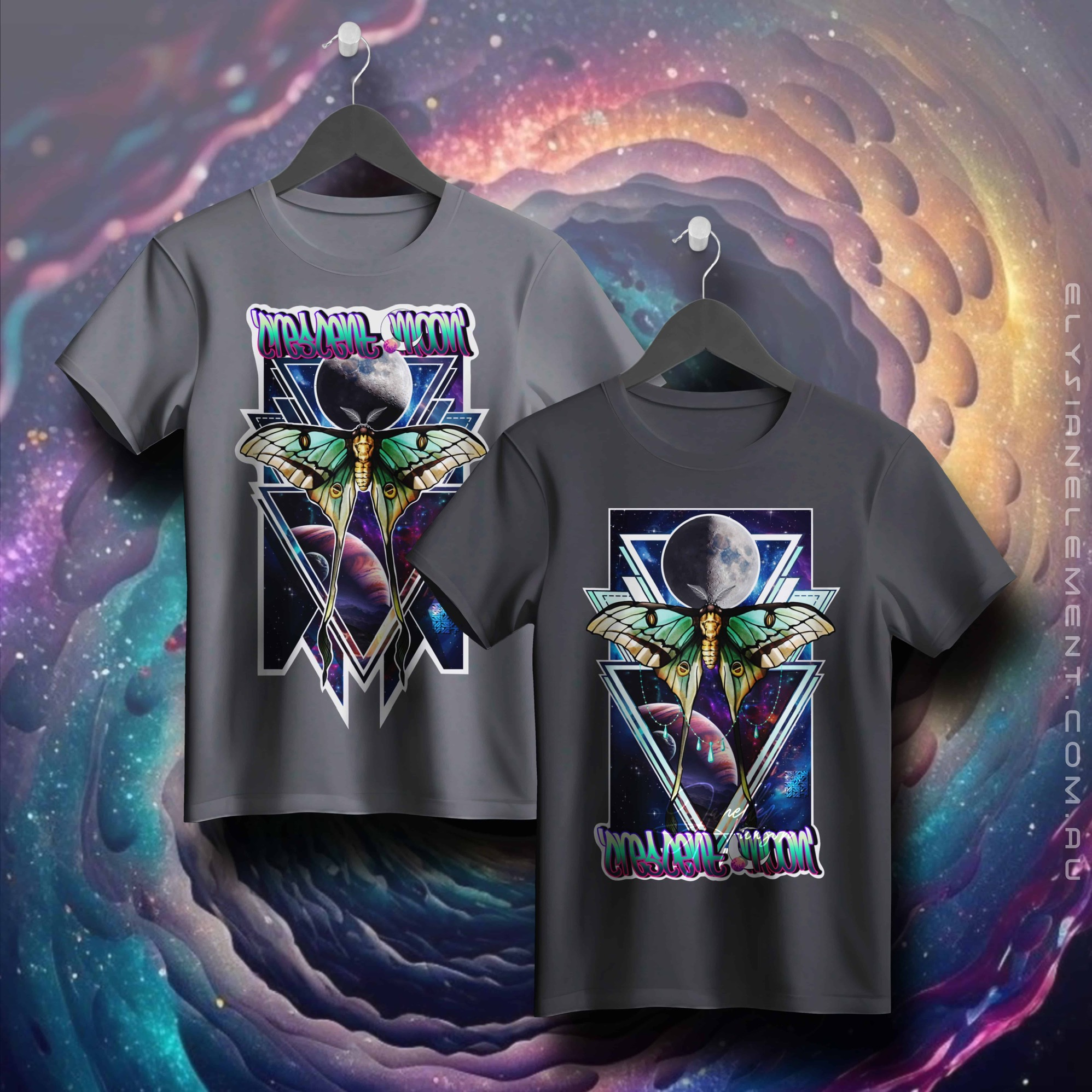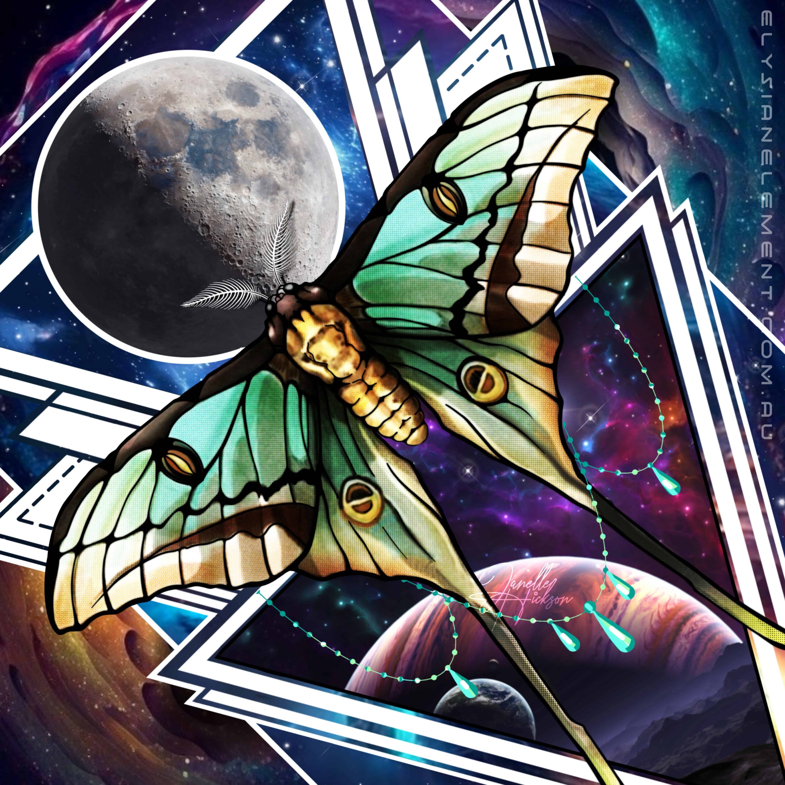 The contrast between the soft, ethereal beauty of the moth and the cosmic geometry beneath it creates a balance of mysticism, symmetry, and celestial elegance. The final result blends fantasy illustration, sacred geometry, and modern decor design into a single statement piece.