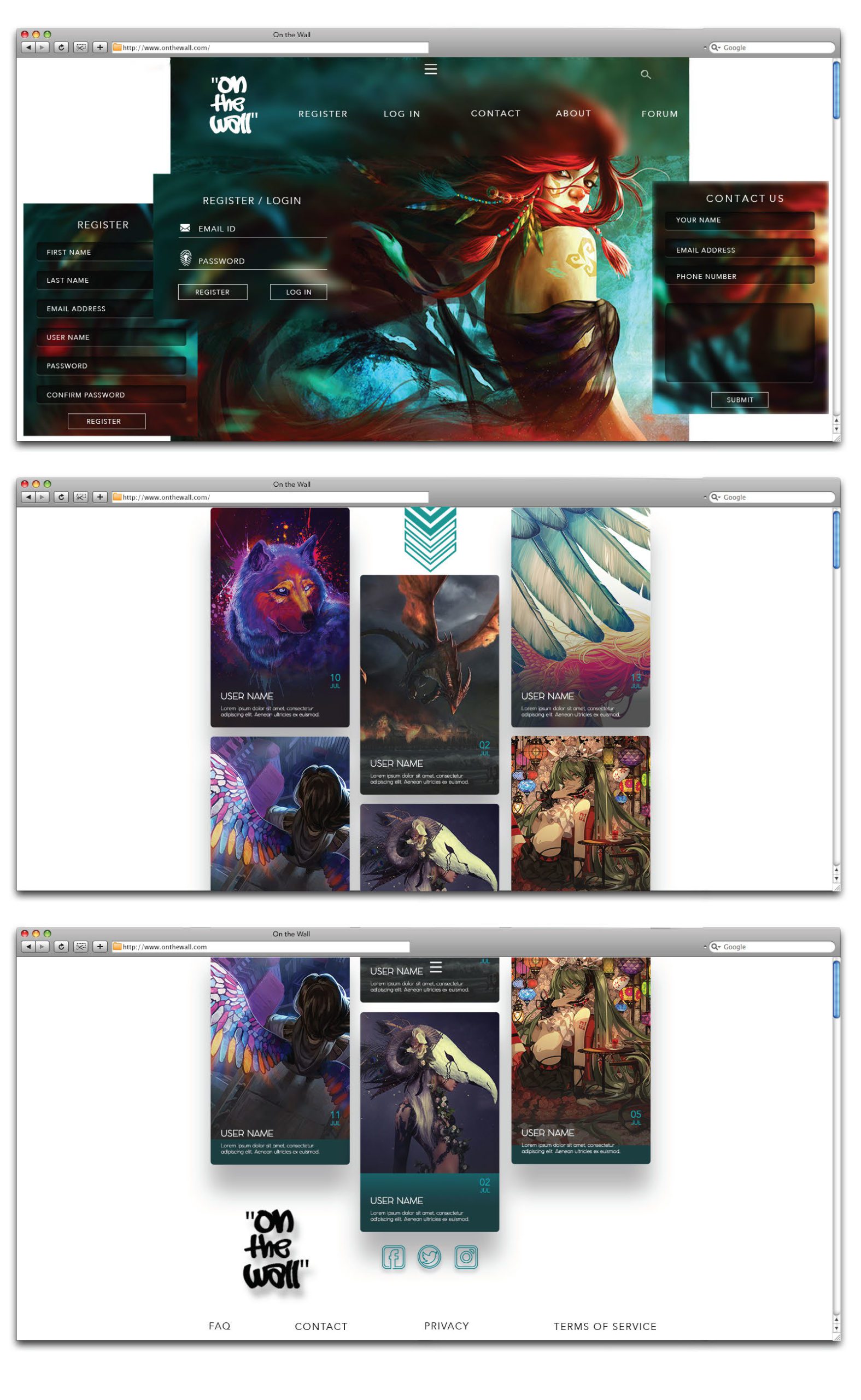 ‘On The Wall’ – A Multi-artist gallery platform – is a collaborative online art gallery platform designed to showcase the work of multiple independent artists in one curated space. The concept is designed by Janelle Hickson, and allows artists to upload, categorize, and present their artwork in a sleek, gallery-style interface — giving users an immersive “art-on-the-wall” viewing experience from any device.