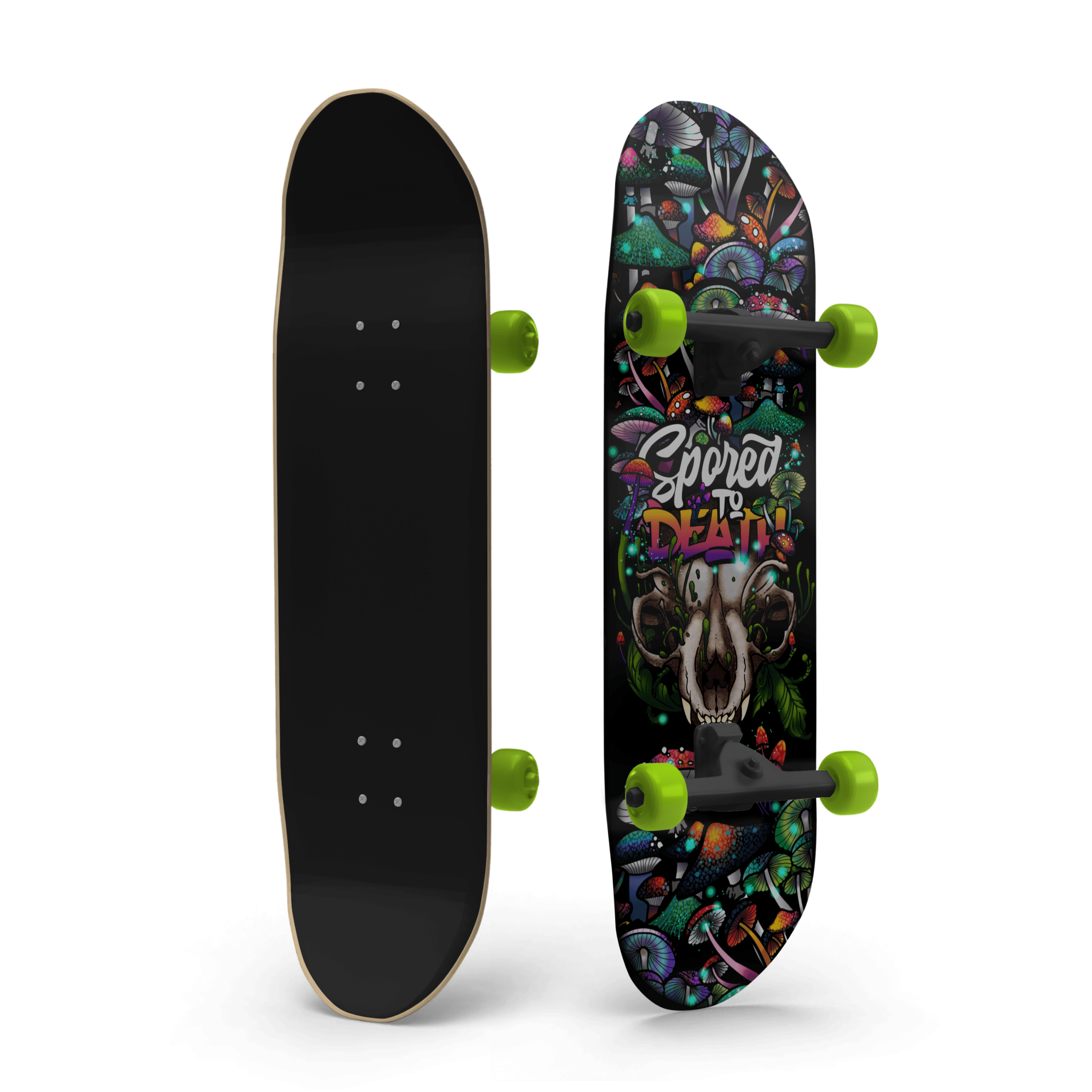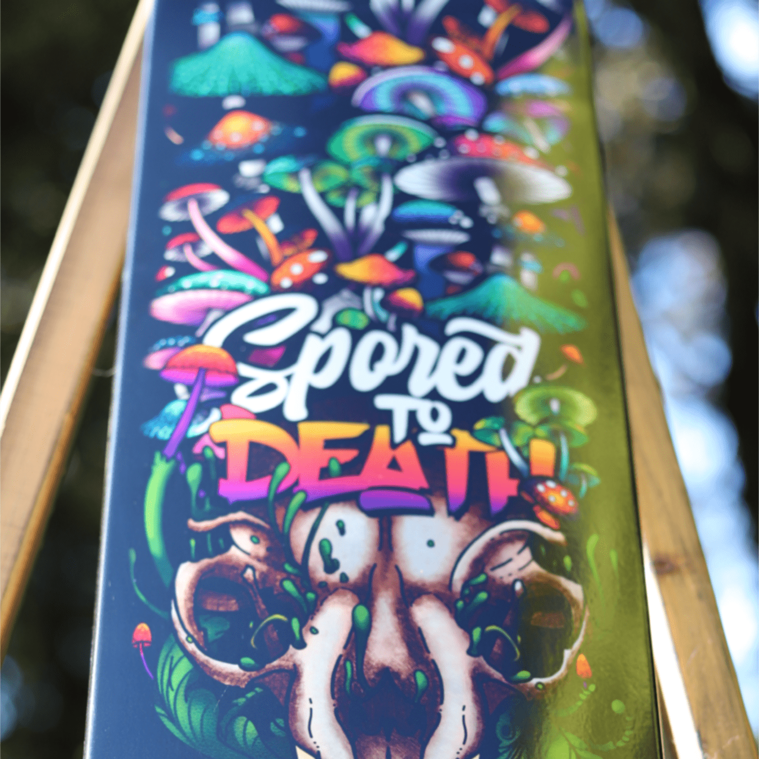 This is the design that started it all – the foundation of the Spored to Death universe. A wordplay turned visual identity— Spored to Death was born from that spark, an inescapable union of skulls and shrooms- just a little bony, and overflowing with fungi. An embodiment of regeneration, and the skate-or-die spirit.