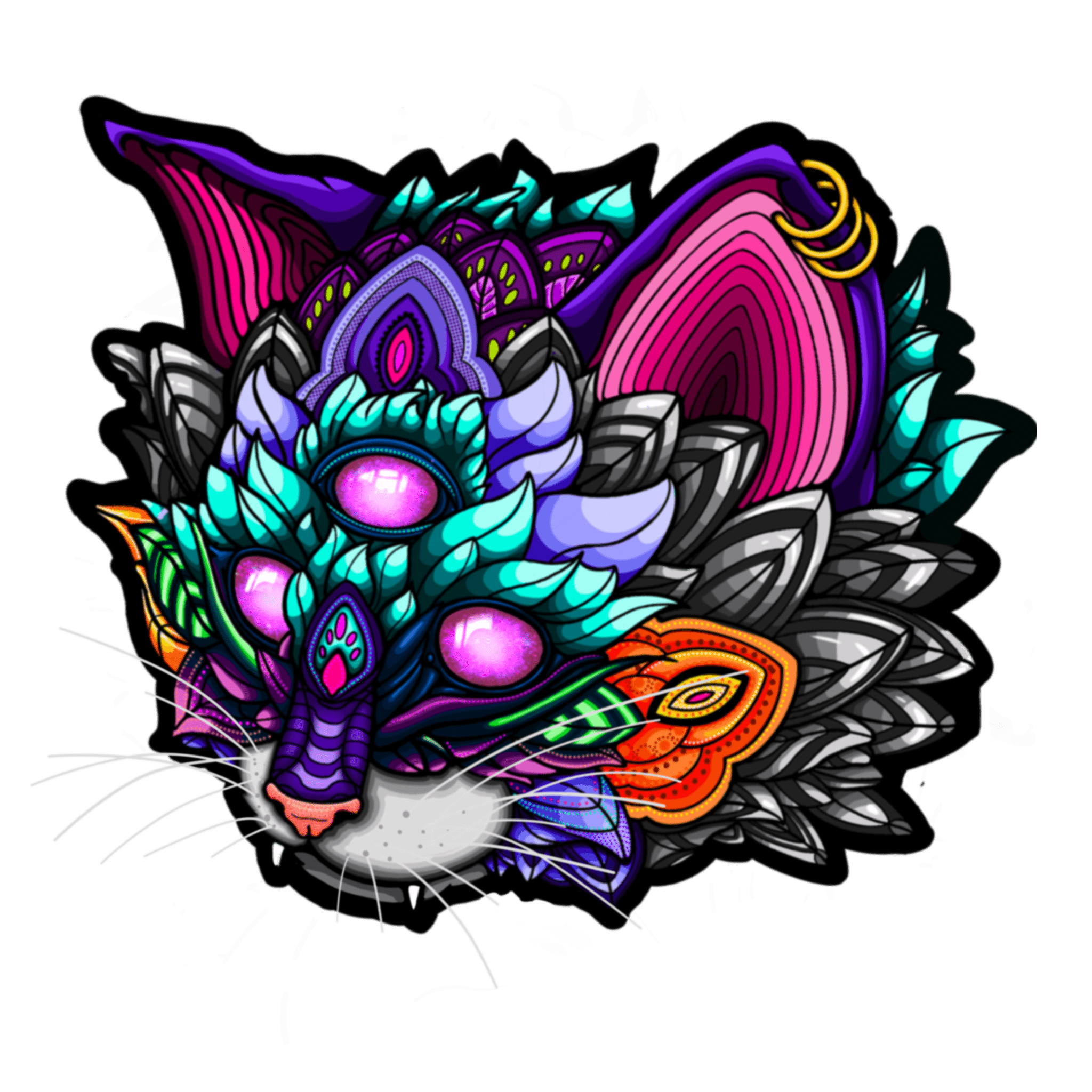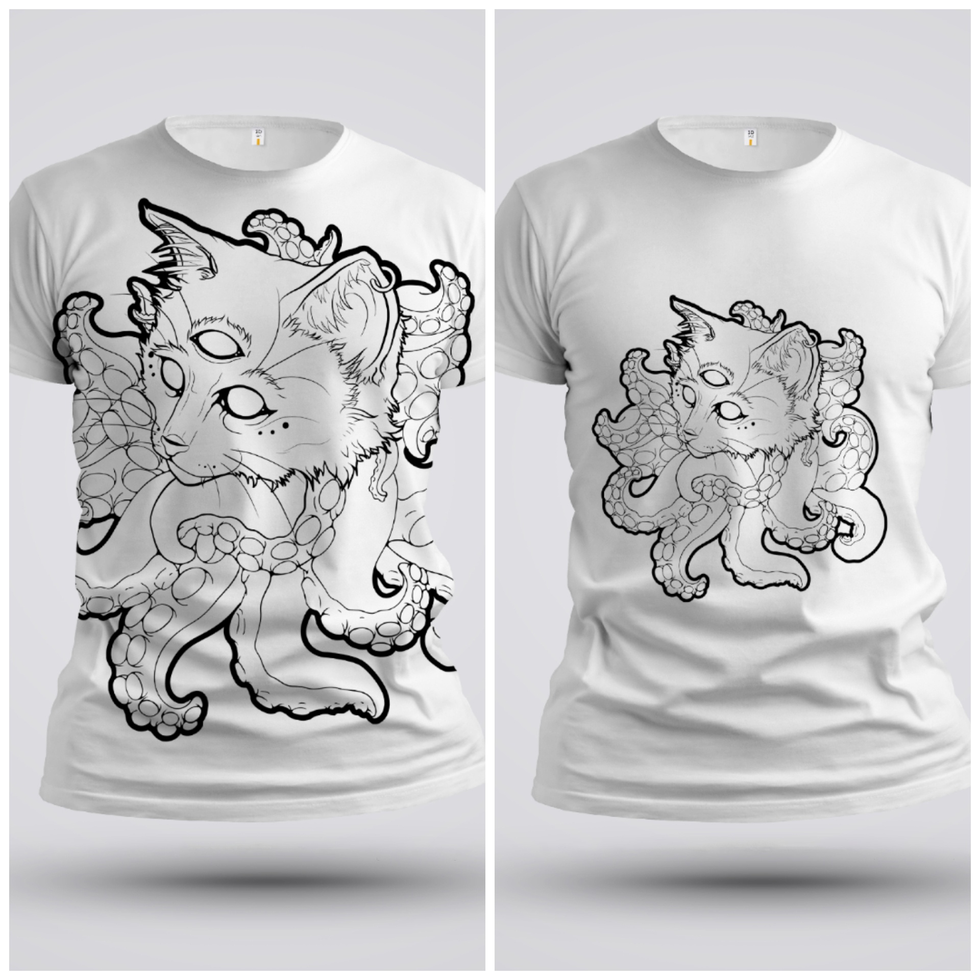 If you know me at all, one of the first things you’ll probably learn about me, is I love cats. Im in LOVE with tigers and snow leopards and sand cats, and i could go on, but i cant KEEP one of those, so i have to have do like the locals do and keep a domestic cat…*fiiiine* – but the other thing im really digging right now is tentacles. So one day I wondered, as I do…what would a cat with tentacles look like? uh…AWESOME! Original design was sketched and developed on paper, then perfected and line work redrawn in ink. acter Development in ProcreateCharacter Development in Procreate