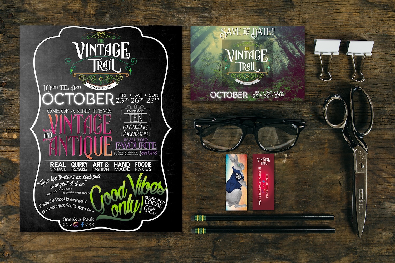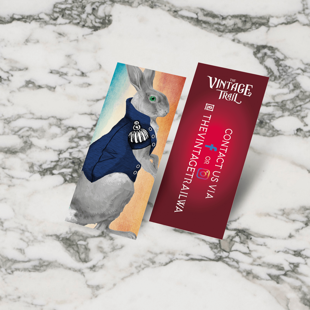 The promotional materials extended beyond the initial flyer-The campaign included a variety of print media, such as stickers, VIP tags, save-the-date cards, mini business cards, and detailed route maps. A standout feature was the creation of the “Vested Rabbit,” the Vintage Trail mascot. This character was not only incorporated into the promotional materials but was also produced as a sheet metal item, adding a unique and collectible element to the event. The mascot was sold in various stores, extending the brand’s reach and creating a lasting impression. This project demonstrates the power of a well-executed promotional strategy in building anticipation and driving attendance for a community event.